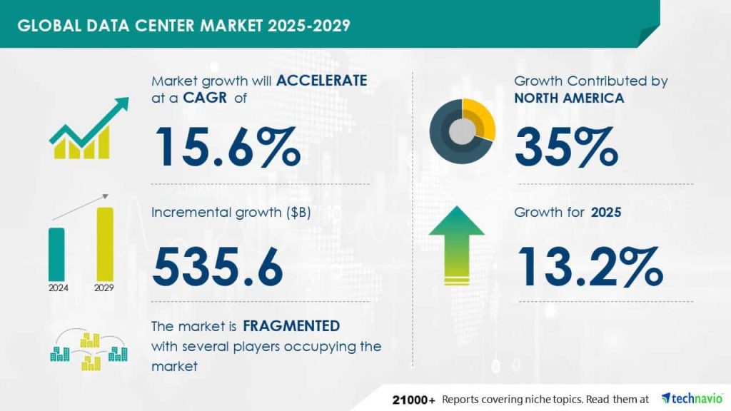 El sector de los centros de datos experimentará un crecimiento significativo en los próximos años, alcanzando un incremento de 535.600 millones de dólares entre 2025 y 2029, según un informe de Technavio. Este crecimiento estará impulsado por la adopción de soluciones de nubes múltiples, las mejoras en redes y el impacto de la Inteligencia Artificial (IA) en la gestión de infraestructuras.