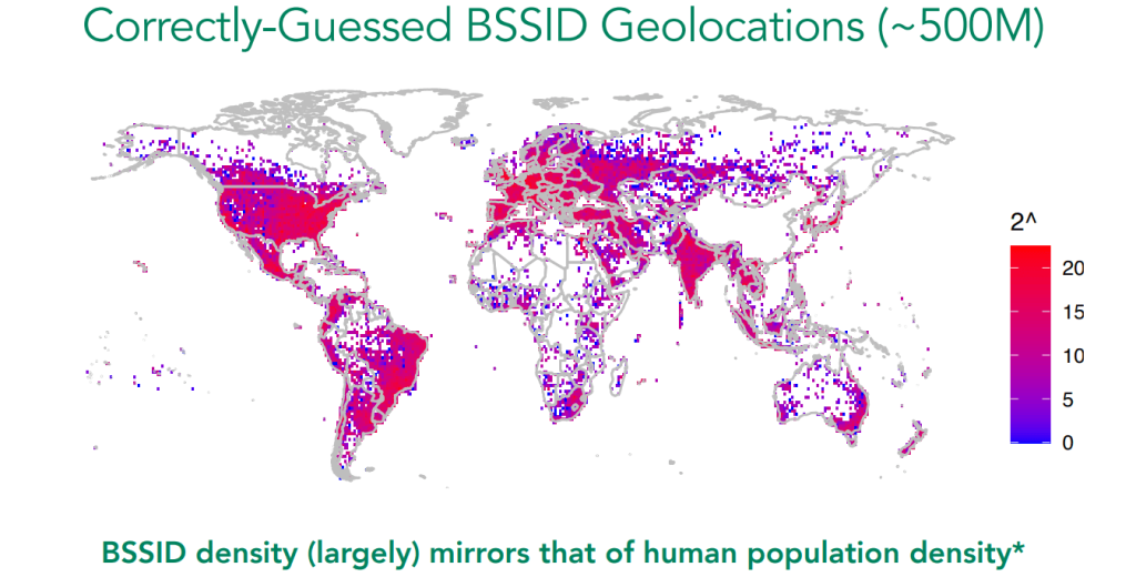 Durante un año de investigación, el equipo recopiló más de 2.000 millones de BSSIDs, construyendo un mapa extremadamente detallado de dispositivos y ubicaciones en todo el mundo. Además, la API devolvía datos de hasta 400 puntos de acceso cercanos por cada solicitud, lo que multiplicaba la capacidad de recolección.